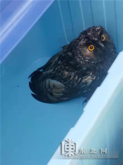 “落汤”猫头鹰趴在路边草丛“偶遇”巡逻民警被救助