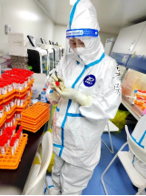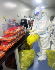 由于任务紧急,当晚就要接样,各区还需要配备物资,所有人员全力以赴,边熟悉流程边工作至凌晨两点。3月16日早上6时30分,姜孝荣所在的工作组第一次进舱,接样、排板、消杀、转运垃圾,出舱后的姜孝荣又困又累又饿,这一晚她只休息了三个小时。
