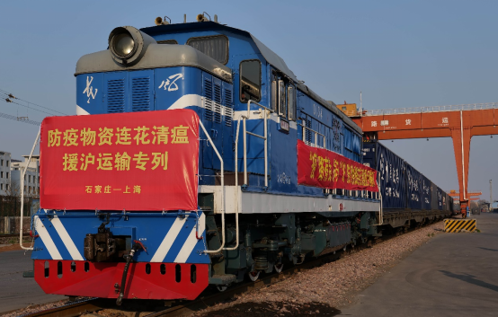 2022年4月3日18时,一辆满载价值5000万元的连花清瘟防疫物资共14个40英尺集装箱专列,从石家庄货运中心西货场缓缓驶出,连夜发往上海杨浦站。这是以岭药业积极响应国家号召,应上海疫情需求,通过中国红十字基金会第二次向上海地区捐赠,累计捐赠已达6100万元,为当地早日战胜疫情发挥了重大作用。