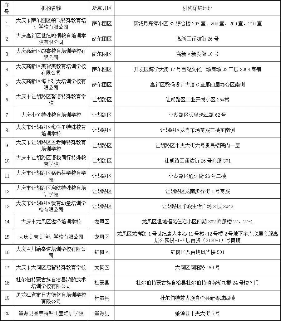 为深入贯彻落实国家“双减”政策,强化对校外培训机构的监督管理,切实维护学生和家长的合法权益,现将大庆市教育行政部门审批的非文化艺术类校外培训机构“白名单”公布如下。