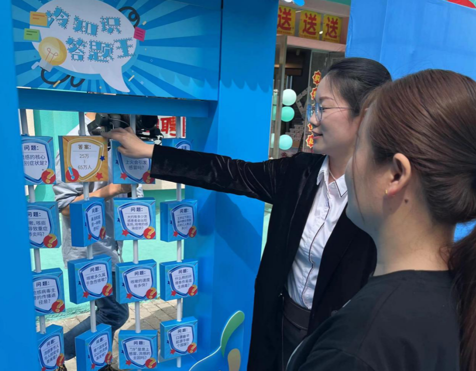 记者在活动现场看到,该场公益活动设置有科普区、合影区、游戏区,还有执业药师在现场与观众进行感冒流感知识问答,以及连花清瘟等常用感冒流感药物的用药科普,参与群众答对,即有机会免费获得连花系列健康防护礼品。丰富多彩的科普活动吸引着众多市民前来打卡参与,而生动有趣的活动形式寓教于乐,让市民在玩乐中树立科学的流感防控意识。