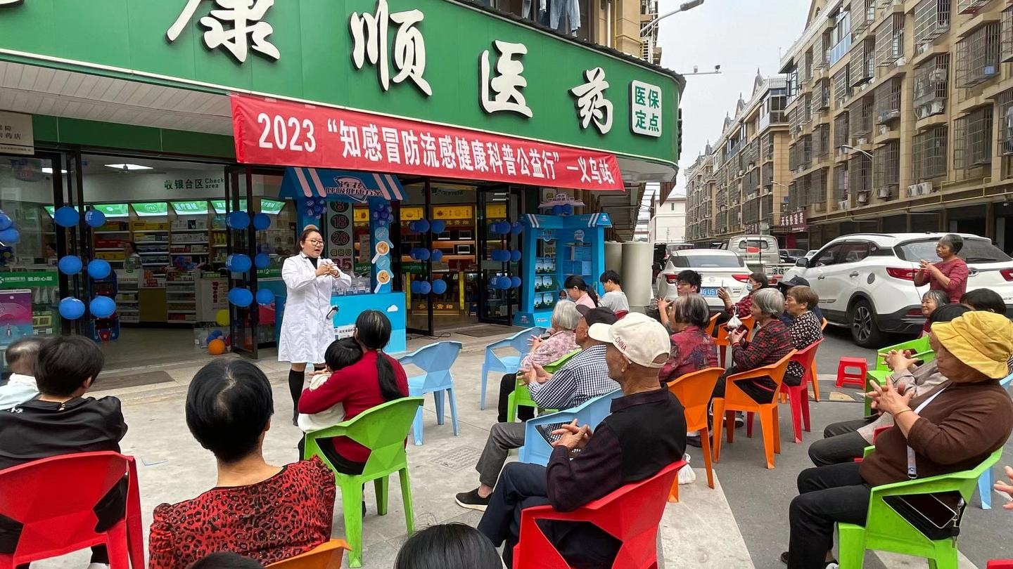 当天的活动现场,义乌康顺医药片区总监朱良波出席活动并表示,义乌市康顺医药连锁有限公司一直致力于守护国民健康,以专业的技能、真诚的态度、务实的姿态,做好市民健康的守门人。同时,也一直积极参与公益项目,开展爱心帮扶,普及健康知识,为实现健康中国出一份力。义乌市康顺医药连锁有限公司作为活动的协办方,一直积极参与知感冒防流感的活动,组织门店员工、合作伙伴一起为全民科普公益行动努力,推动这项公益事业的长足发展,为更多的市民消费者传授感冒健康知识。