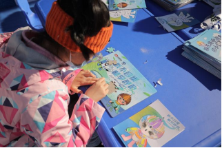 在DIY游戏区,参与活动的小朋友们纷纷化身“清咳卫士”,拍照打卡,与咳嗽“战斗”,也在游戏中了解到咳嗽的危害。