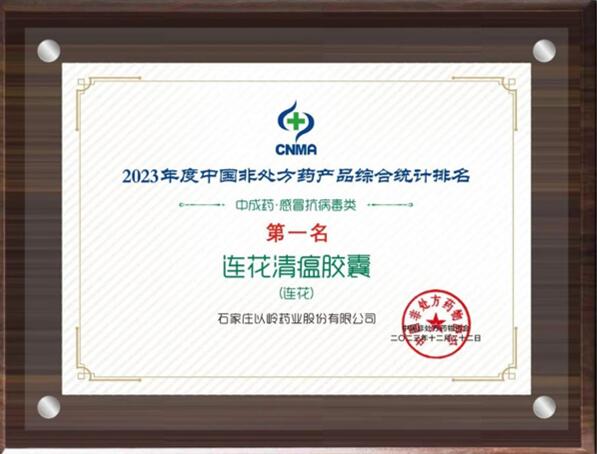 近日,备受瞩目的“2023年度中国非处方药产品综合统计排名”榜单揭晓,连花清瘟胶囊凭借其在感冒抗病毒领域的卓越疗效,荣获中成药感冒抗病毒类第一名。这一荣誉不仅是对连花清瘟品牌知名度和影响力的高度认可,更是对其科研成果和临床应用的充分肯定。