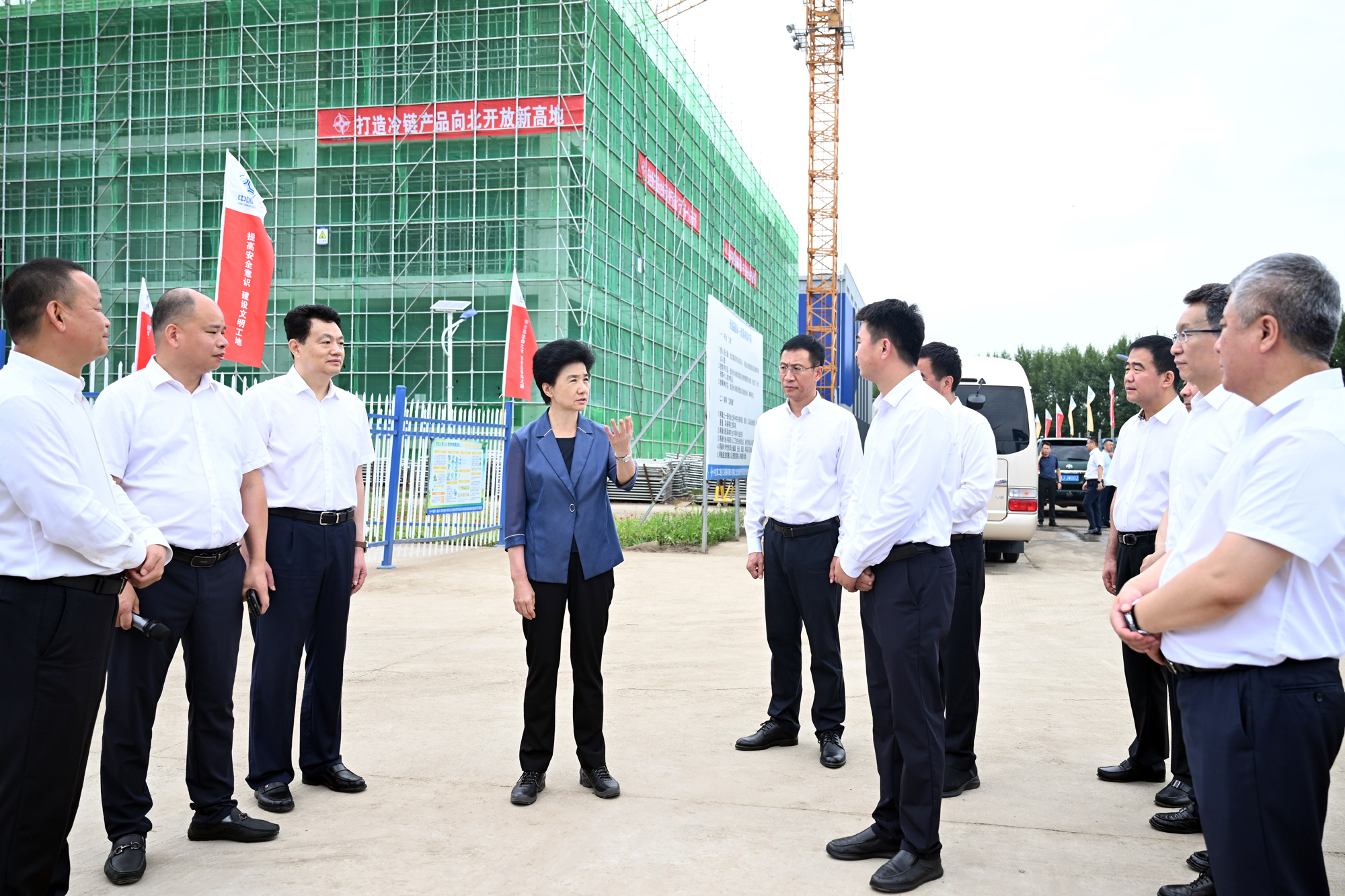 ▲省委副书记、省长梁惠玲来到宝清县冷链物流项目建设现场,了解项目建设进展情况。