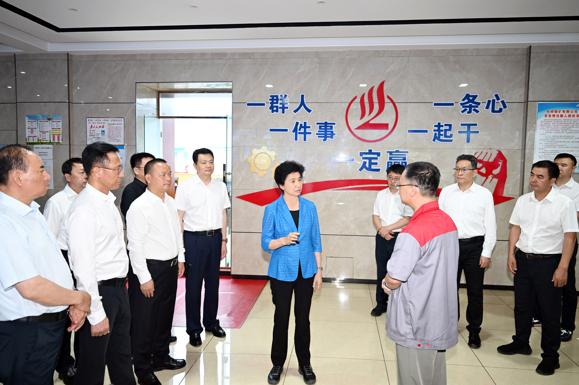 ▲在宝清县双柳煤矿,省委副书记、省长梁惠玲察看综合智管平台,了解煤矿安全生产和智能化建设情况。