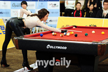 韩国小姐穿皮草露蛮腰 台球大赛秀长腿