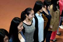 南京青奥会志愿者培训启动 咬筷子练微笑