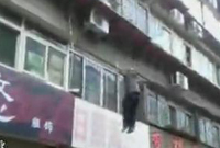 男子不慎坠楼瞬间 众人拉网将其兜住