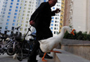 石家庄六旬老人每天遛"宠物鹅"散步(组图)