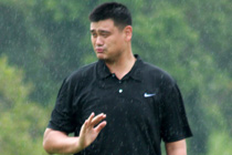 姚明冒雨打高尔夫 发挥欠佳表情郁闷