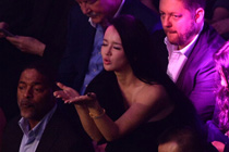 邹市明娇妻露肩装看台观战:鼓掌+飞吻+祈祷