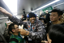 马布里当志愿者 清理地铁小广告获大妈赞誉
