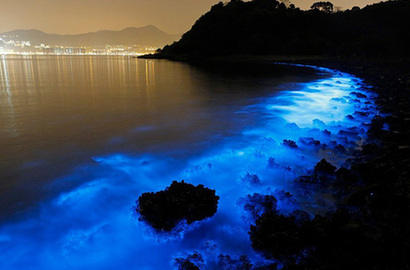 因废水污染香港现蓝色荧光海滩(图)