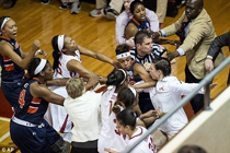 美国女篮赛场火爆群殴 打脸锁喉上演全武行