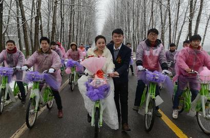 "90后"青年骑公共自行车迎娶新娘